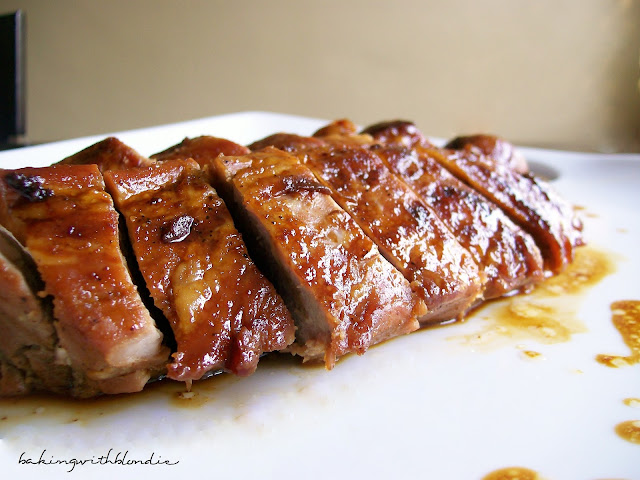 I think I further convinced him it was a good choice when he saw me hovering over the oven, slowly spooning the honey butter juices from the pan over the beautifully delicious pork tenderloin as it deliciously roasted away. He gave me one of those looks, and I knew I had him in the palm of my hand. Meat/food is a one-way highway to this man's heart.